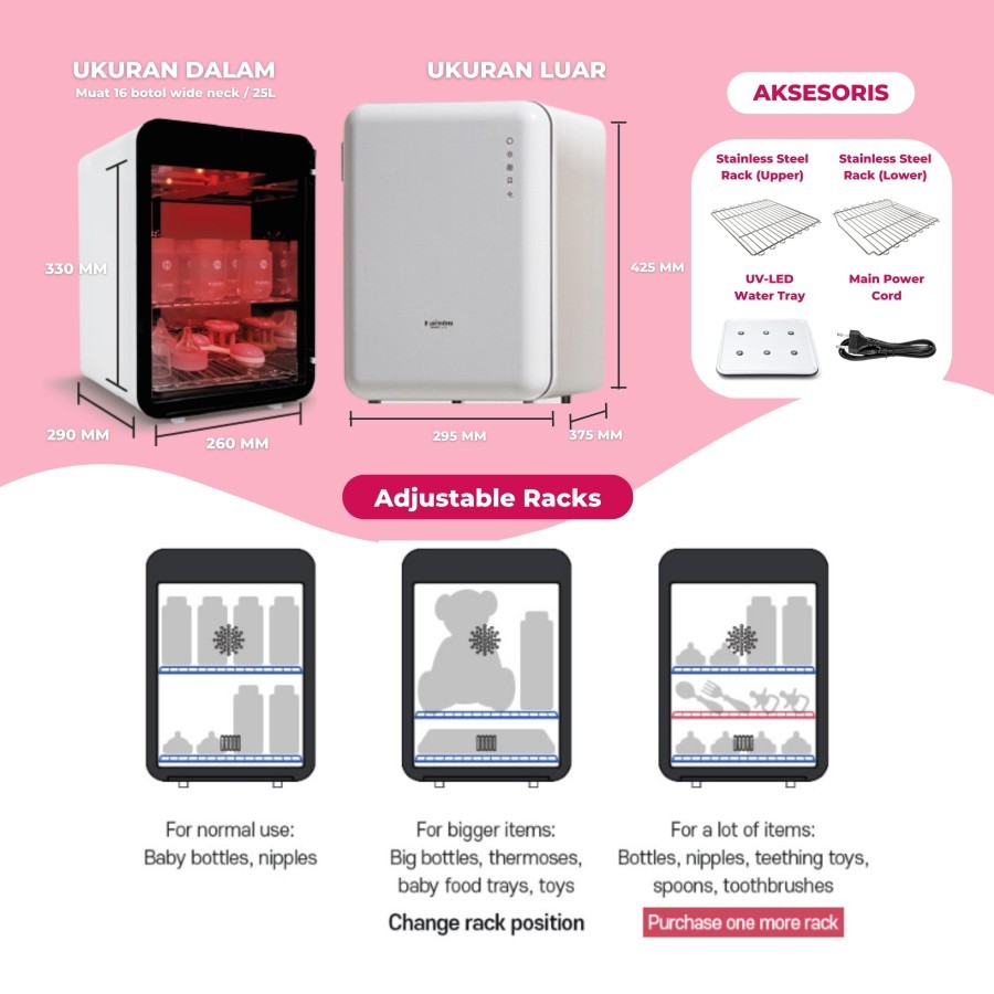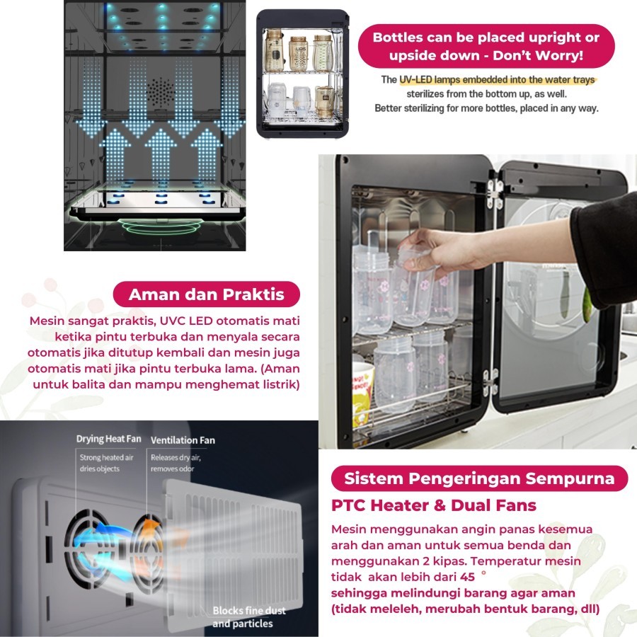 • Memiliki 4 mode utama (auto, UV, dry dan 24 hours storage)
